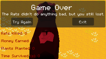 Welcome to Rat Attack! A gamer where you defend your farm from rats, that are... uh... doing something bad I guess. (Look I didn't intend for the rat 3d model to turn out so cute, so I feel kind of bad for making them the enemy).